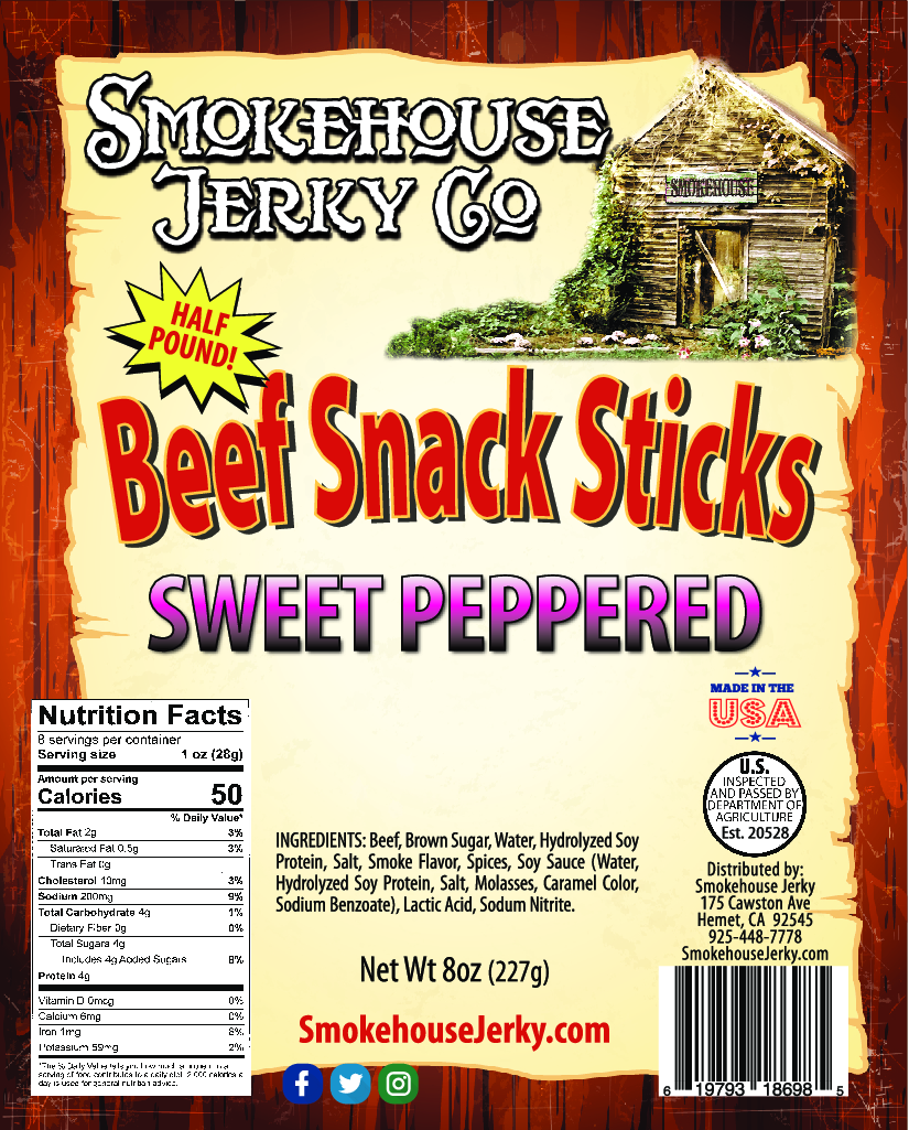 In summary, our Sweet Peppered Beef Sticks are the perfect combination of sweet and savory flavors, with a hint of pepper that provides just the right amount of kick. They are a great source of protein, and their convenient packaging makes them an ideal snack for anyone on the go. Try them today and experience the deliciousness for yourself!